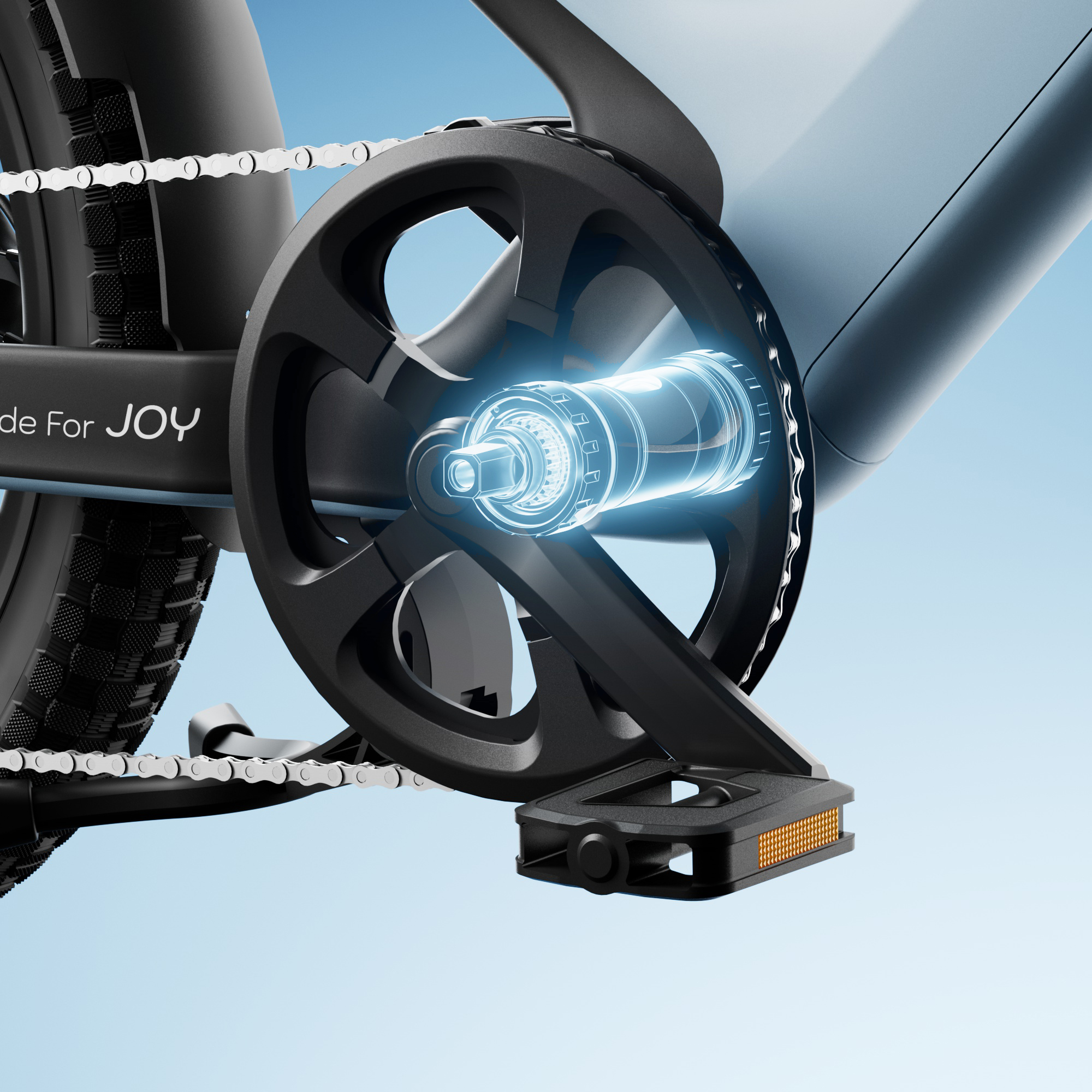 The Carbon Joy Ultra electric cruiser bike is 50% lighter than aluminum while ensuring exceptional strength and durability. Its flowing ribbon-inspired chainstays evoke motion, while the seat-tube-free frame is designed to turn heads and stand out.